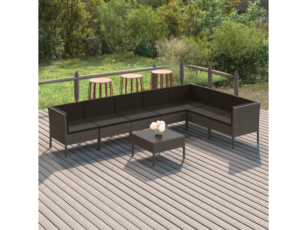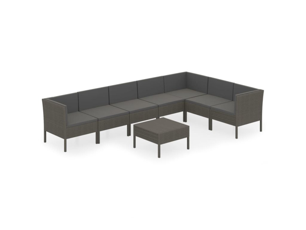8dílná zahradní sedací souprava s poduškami polyratan šedá 3094430