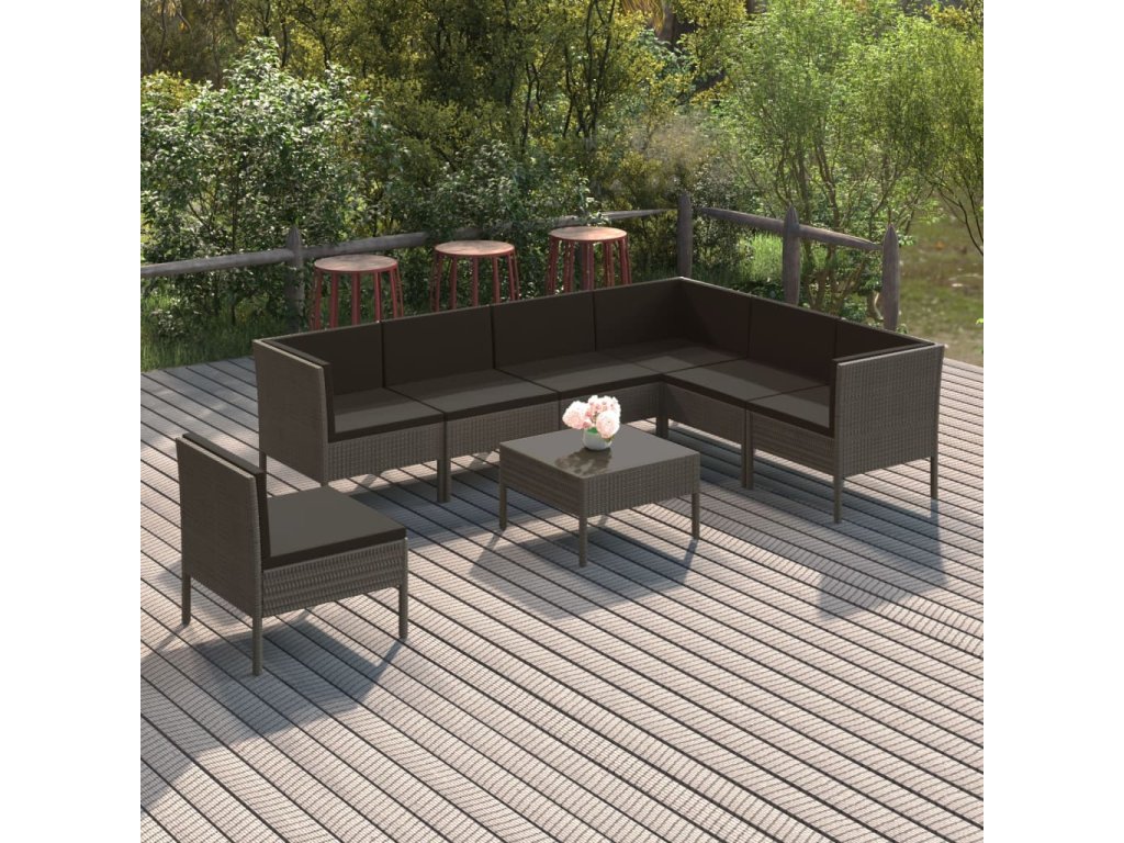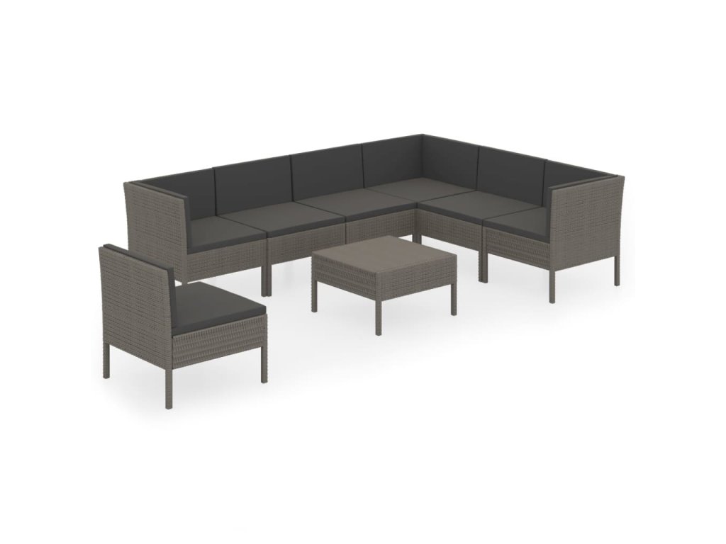 8dílná zahradní sedací souprava s poduškami polyratan šedá 3094442