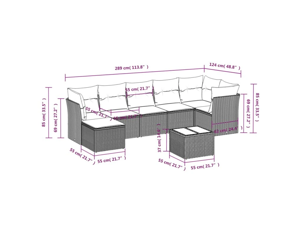Tato zahradní sedací souprava je dokonalým doplňkem vaší zahrady, terasy nebo dvorku a poskytne vám pohodlné a příjemné místo, kde si můžete povídat s rodinou a přáteli nebo jen tak odpočívat a užívat si pobyt venku.