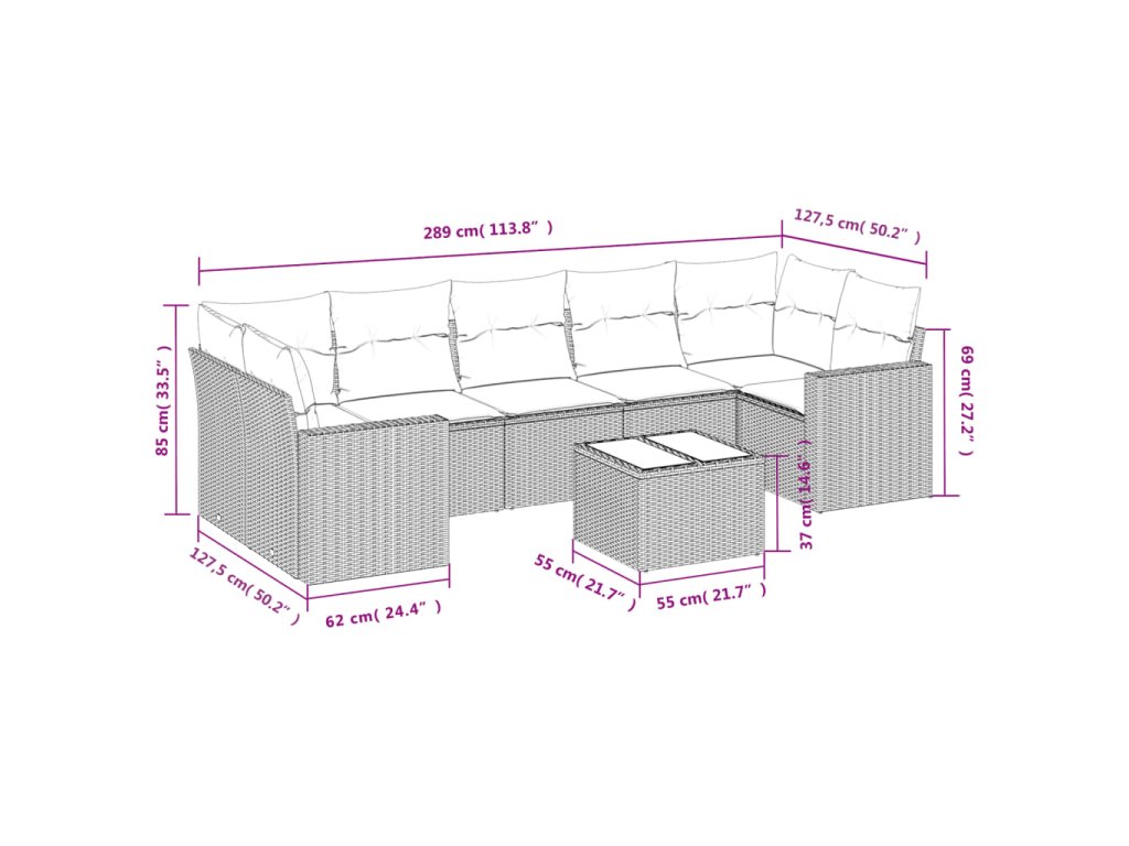 8dílná zahradní sedací souprava s poduškami šedá polyratan 3218730
