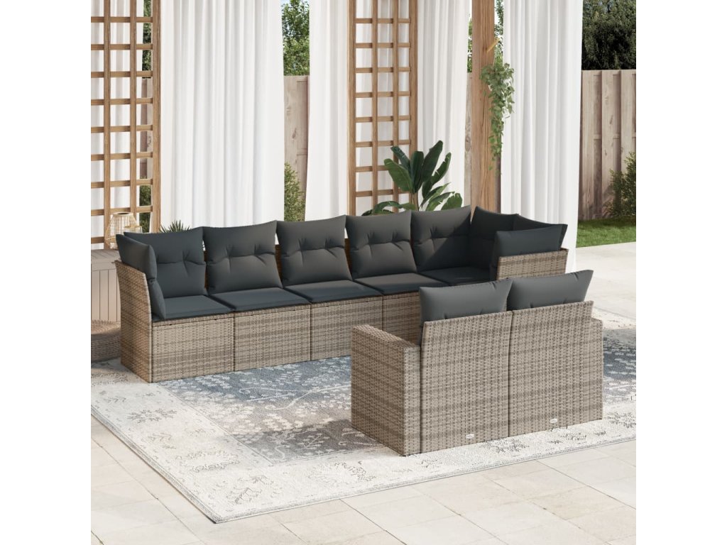 8dílná zahradní sedací souprava s poduškami šedá polyratan 3219210