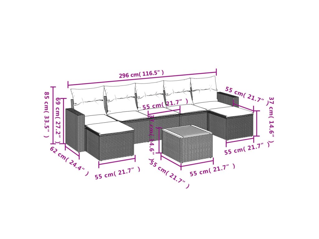 8dílná zahradní sedací souprava s poduškami šedá polyratan 3224254