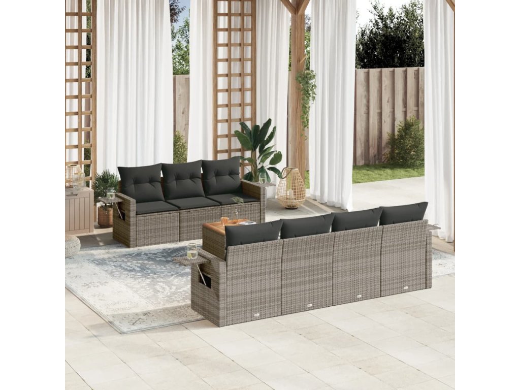 8dílná zahradní sedací souprava s poduškami šedá polyratan 3224471