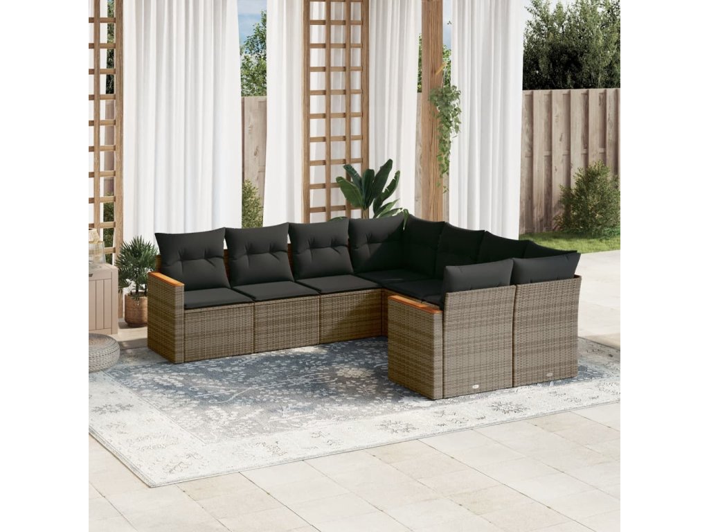 8dílná zahradní sedací souprava s poduškami šedá polyratan 3226557