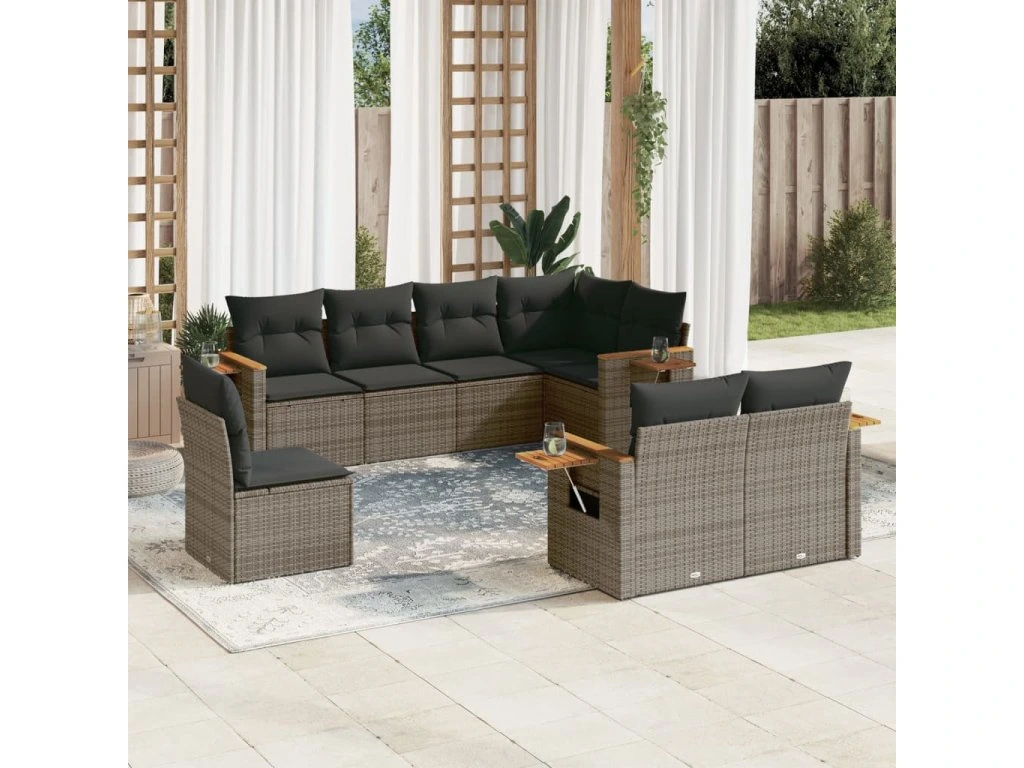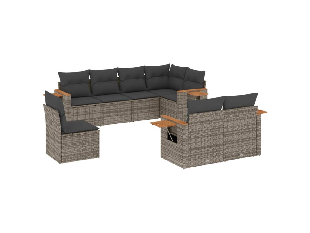 8dílná zahradní sedací souprava s poduškami šedá polyratan 3227005