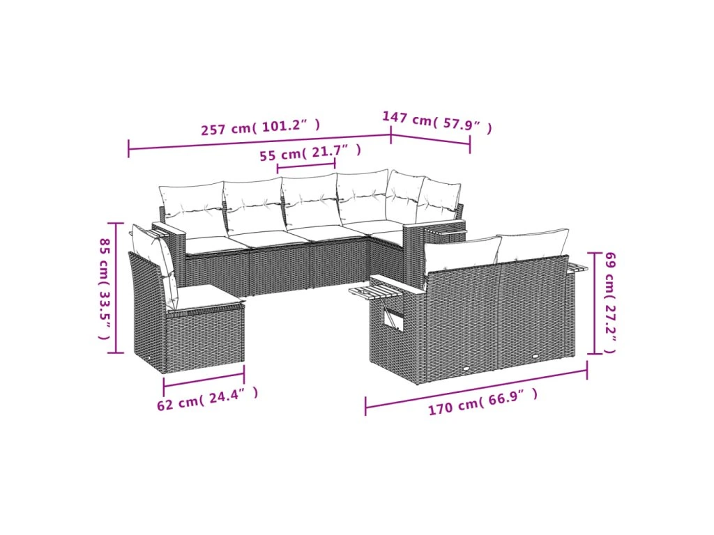 - Modulární design: Tato sada venkovního nábytku se vyznačuje modulární konstrukcí, je tedy zcela flexibilní a lze ji snadno přemisťovat, takže si můžete uspořádat venkovní nábytek dle vašich potřeb.