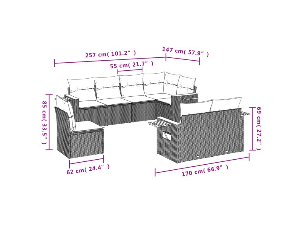 Tato zahradní sedací souprava je dokonalým doplňkem vaší zahrady, terasy nebo dvorku a poskytne vám pohodlné a příjemné místo, kde si můžete povídat s rodinou a přáteli nebo jen tak odpočívat a užívat si pobyt venku.