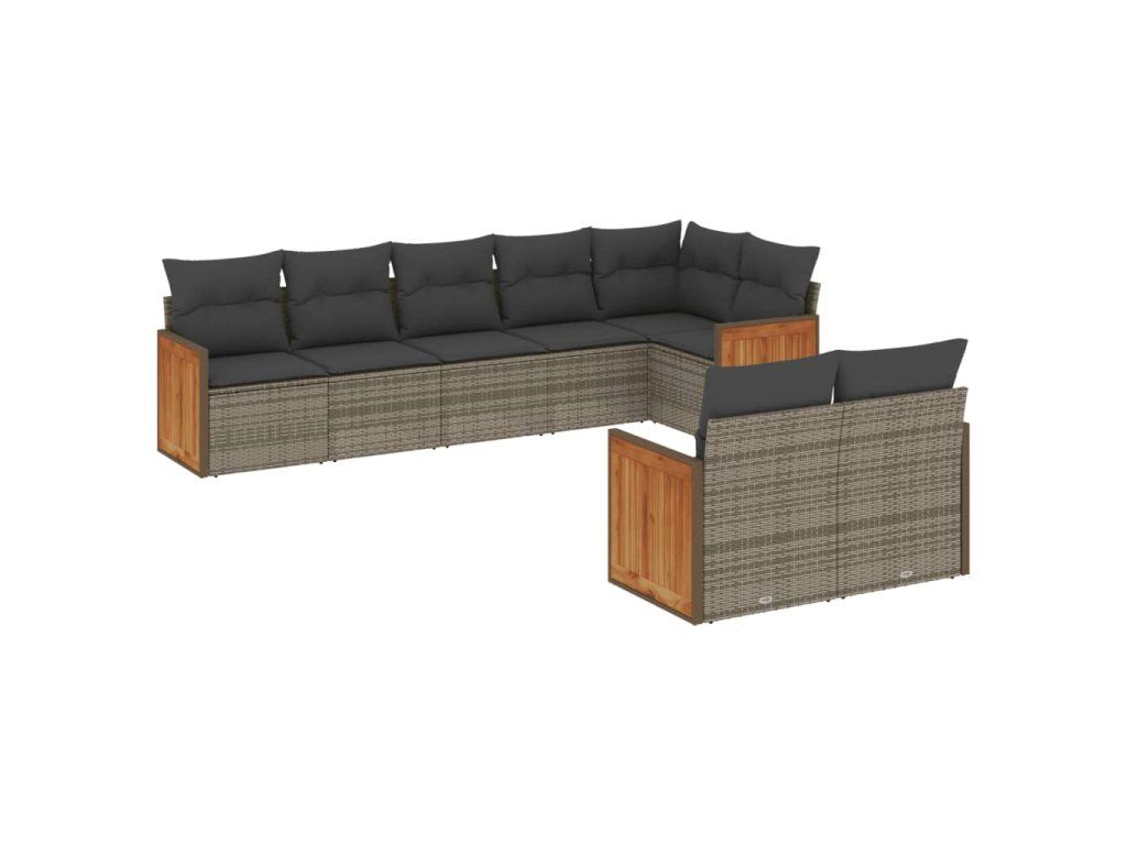 8dílná zahradní sedací souprava s poduškami šedá polyratan 3227831