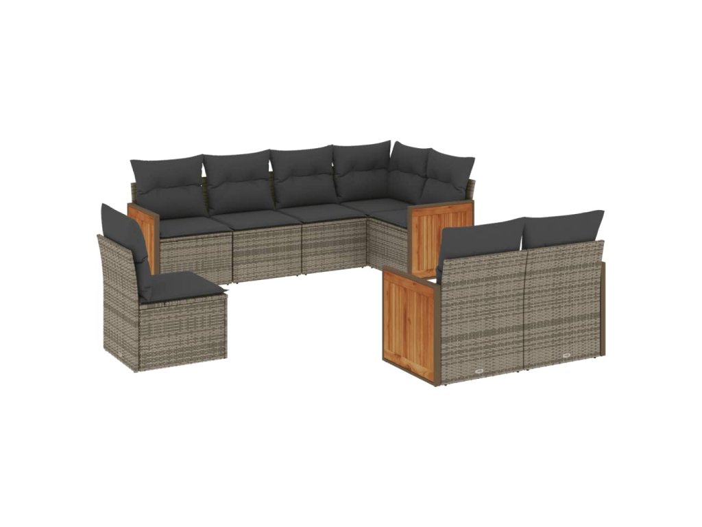 8dílná zahradní sedací souprava s poduškami šedá polyratan 3227845
