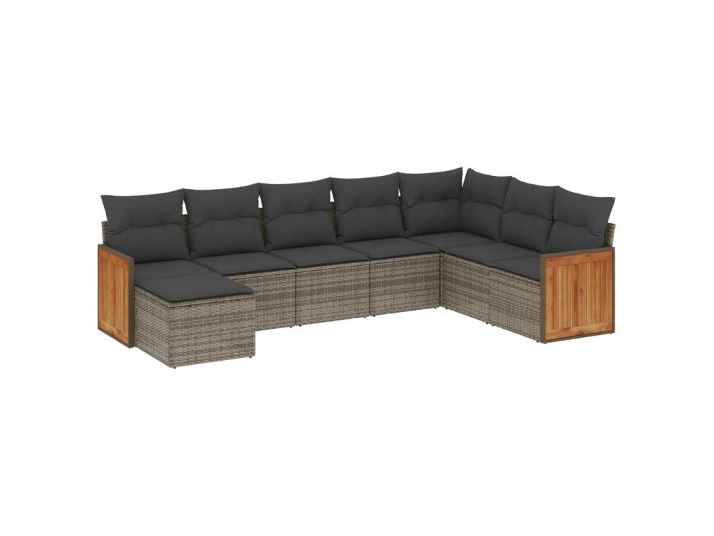 8dílná zahradní sedací souprava s poduškami šedá polyratan 3227929