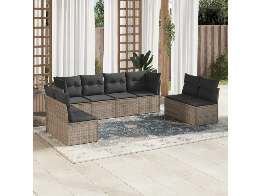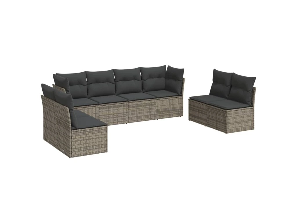 8dílná zahradní sedací souprava s poduškami šedá polyratan 3249289