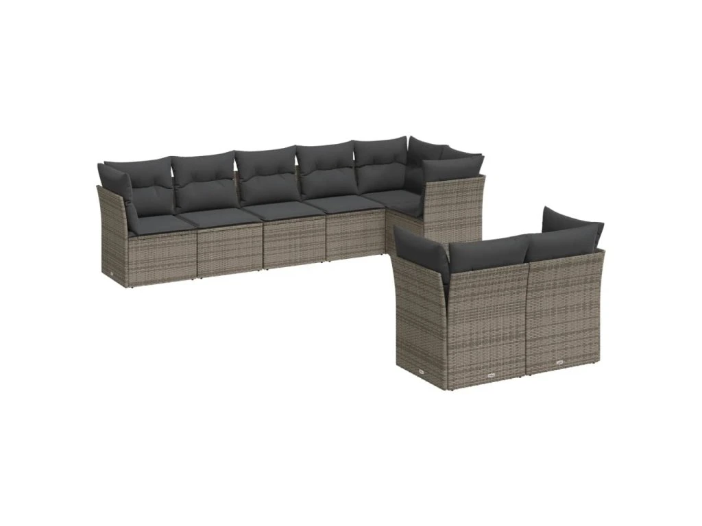 8dílná zahradní sedací souprava s poduškami šedá polyratan 3249749