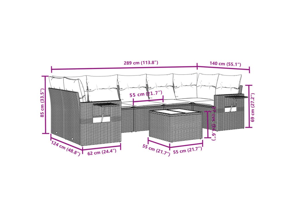 8dílná zahradní sedací souprava s poduškami šedá polyratan 3252277