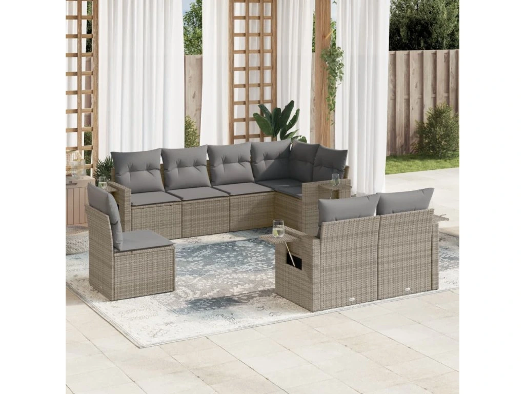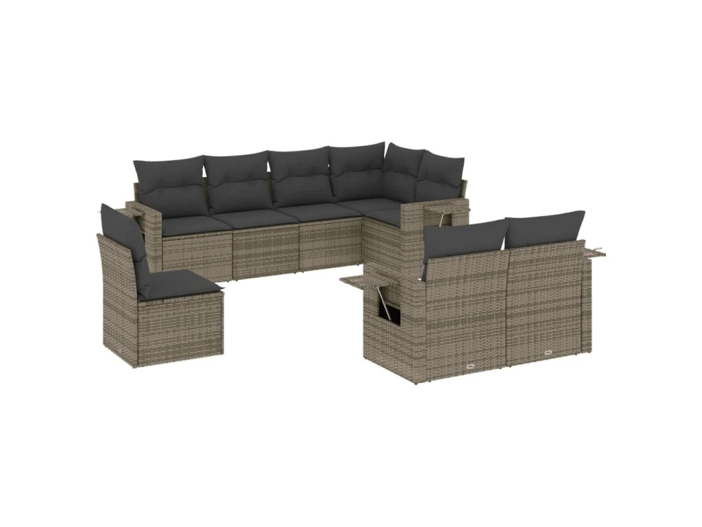 8dílná zahradní sedací souprava s poduškami šedá polyratan 3252777
