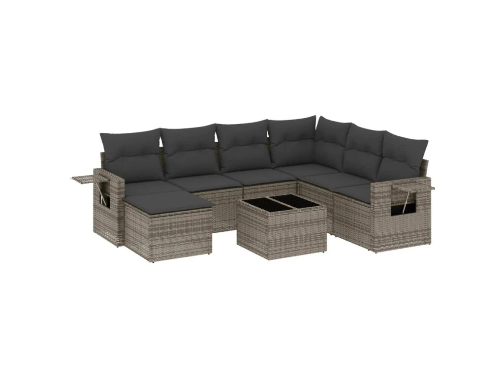 8dílná zahradní sedací souprava s poduškami šedá polyratan 3252847