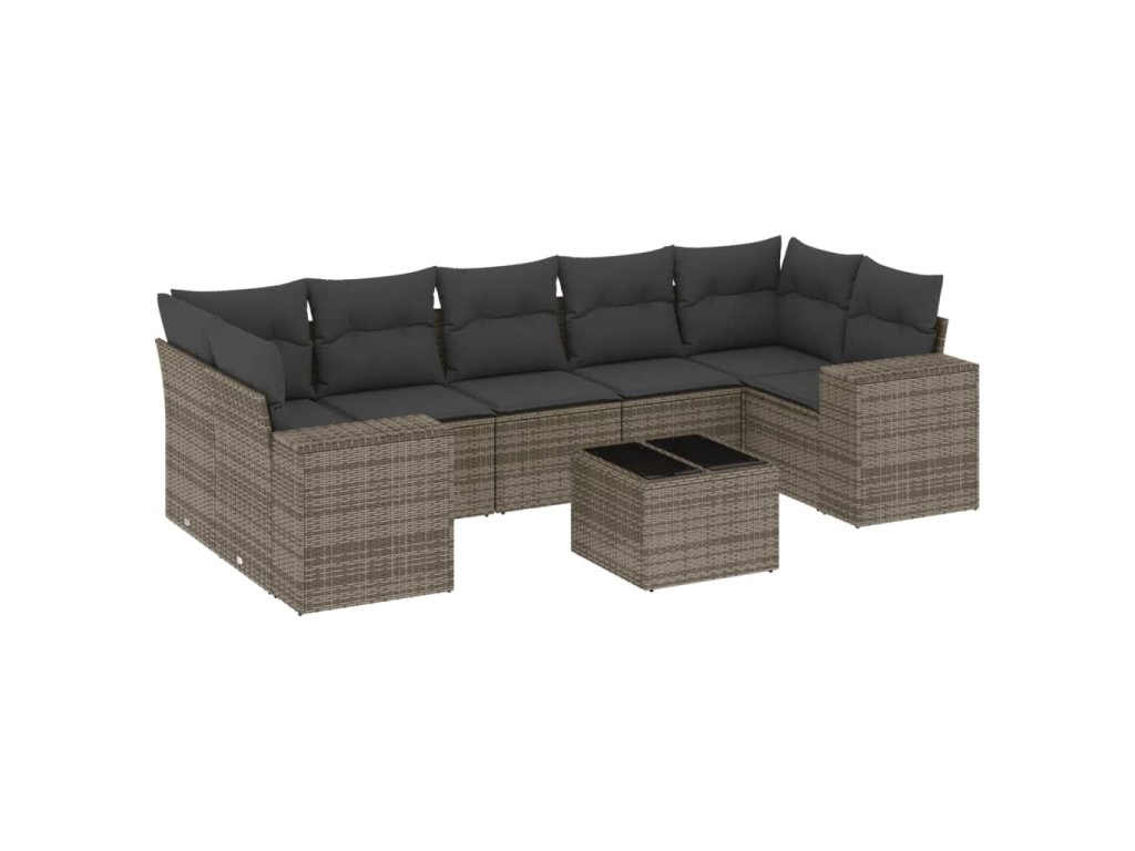 8dílná zahradní sedací souprava s poduškami šedá polyratan 3254677