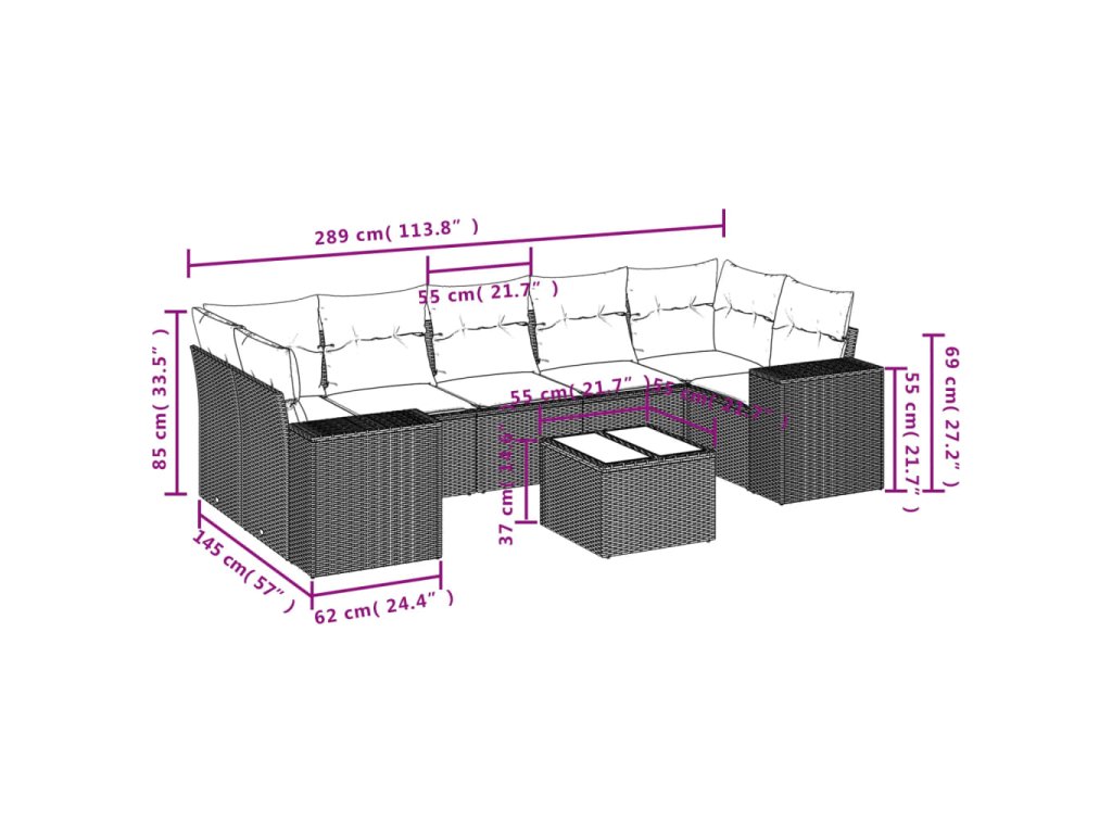 Tato zahradní sedací souprava je dokonalým doplňkem vaší zahrady, terasy nebo dvorku a poskytne vám pohodlné a příjemné místo, kde si můžete povídat s rodinou a přáteli nebo jen tak odpočívat a užívat si pobyt venku.