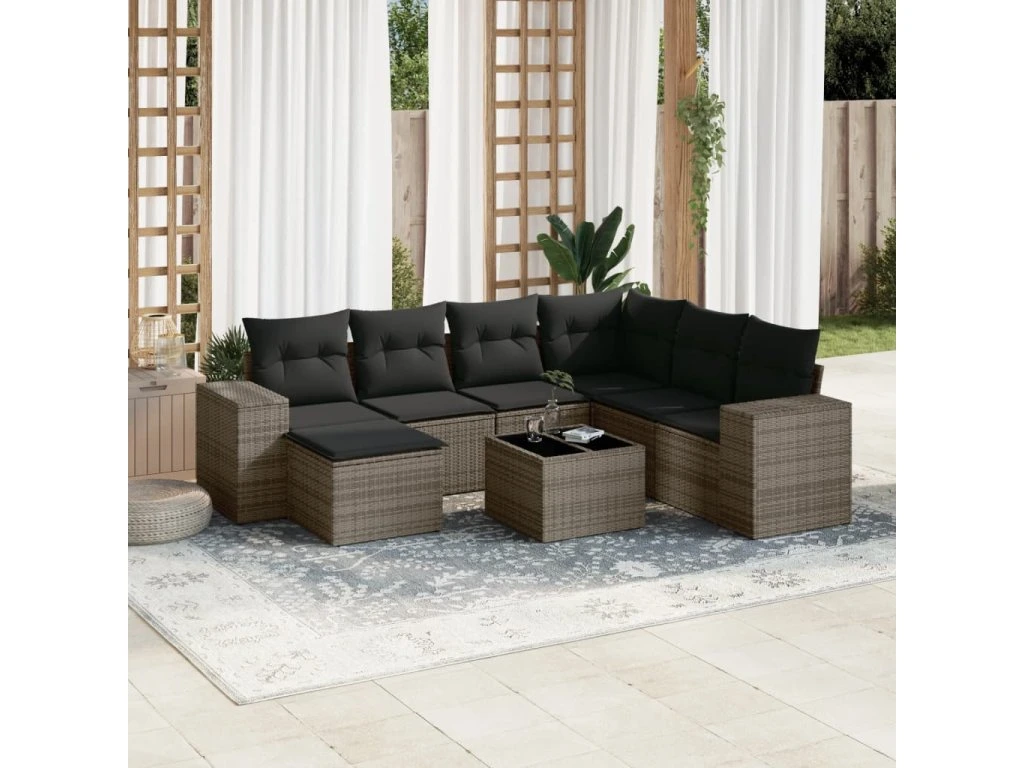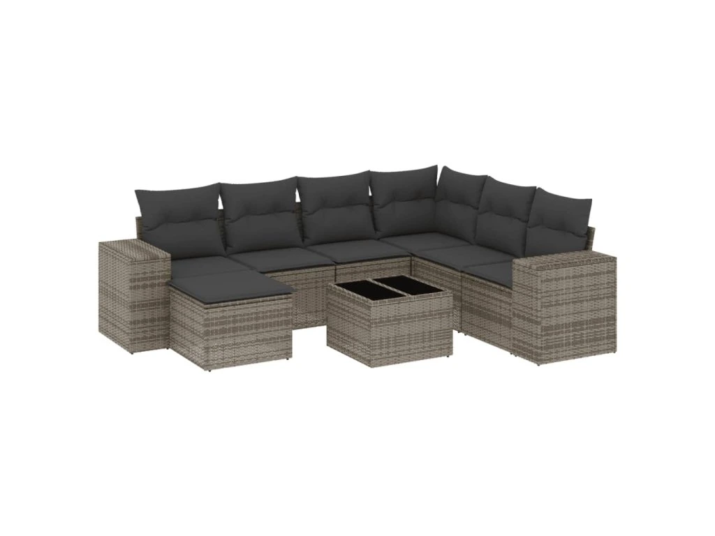 8dílná zahradní sedací souprava s poduškami šedá polyratan 3255247