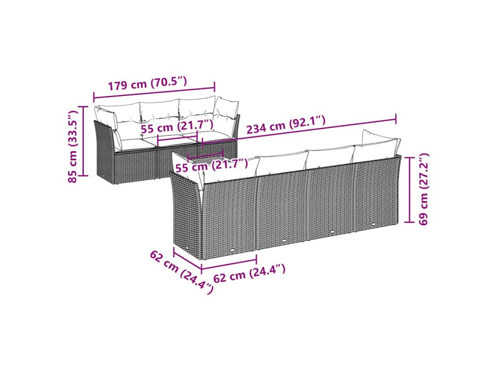 Tato zahradní sedací souprava je dokonalým doplňkem vaší zahrady, terasy nebo dvorku a poskytne vám pohodlné a příjemné místo, kde si můžete povídat s rodinou a přáteli nebo jen tak odpočívat a užívat si pobyt venku.