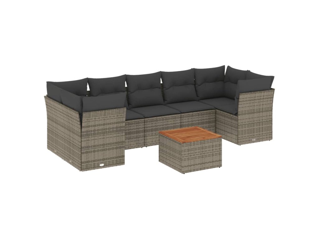 8dílná zahradní sedací souprava s poduškami šedá polyratan 3255843