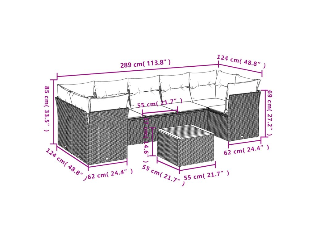 Tato zahradní sedací souprava je dokonalým doplňkem vaší zahrady, terasy nebo dvorku a poskytne vám pohodlné a příjemné místo, kde si můžete povídat s rodinou a přáteli nebo jen tak odpočívat a užívat si pobyt venku.