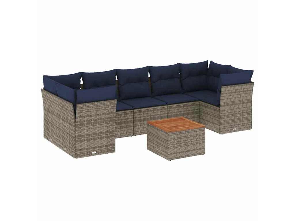 8dílná zahradní sedací souprava s poduškami šedá polyratan 3255844