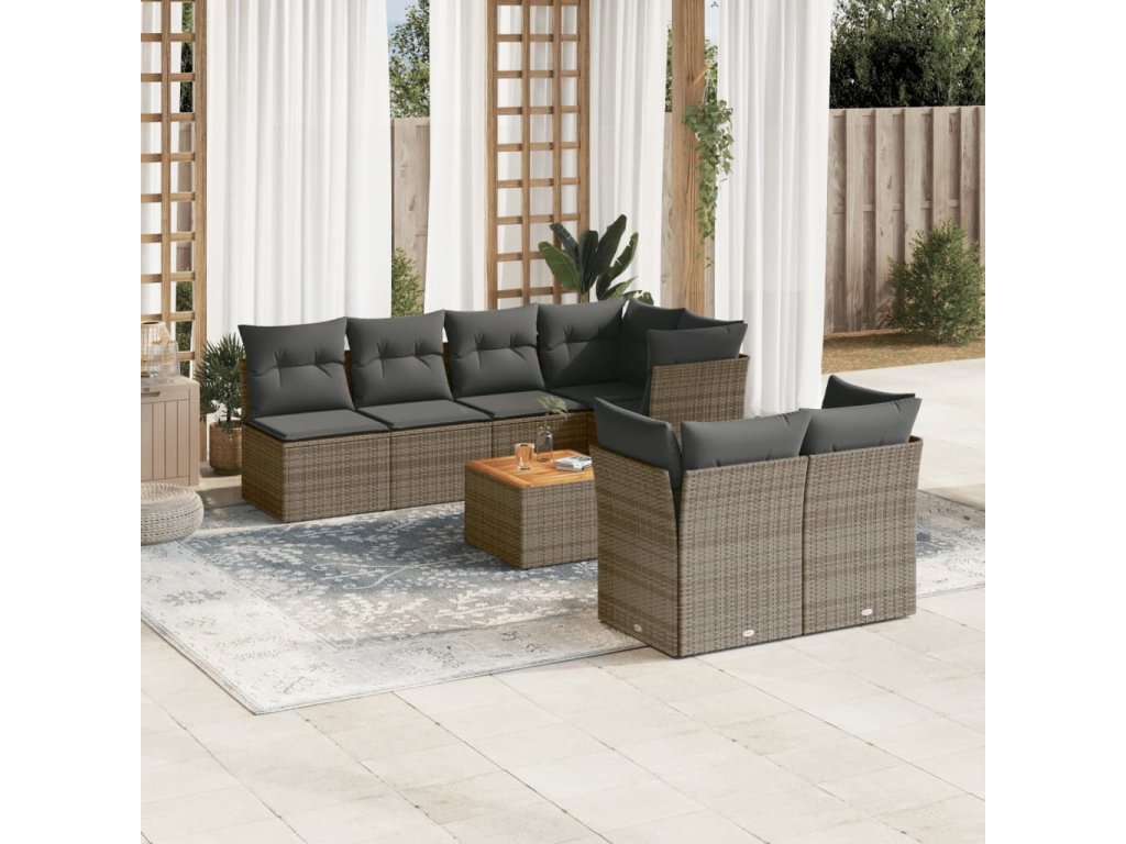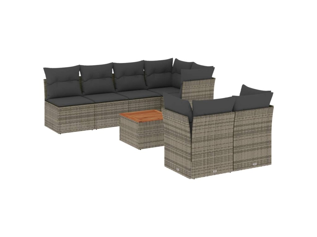 8dílná zahradní sedací souprava s poduškami šedá polyratan 3255850