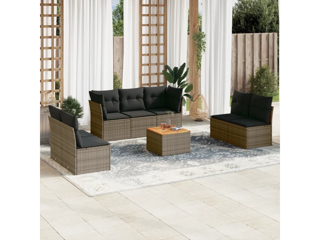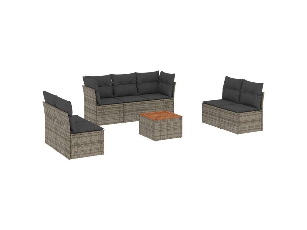 8dílná zahradní sedací souprava s poduškami šedá polyratan 3255899