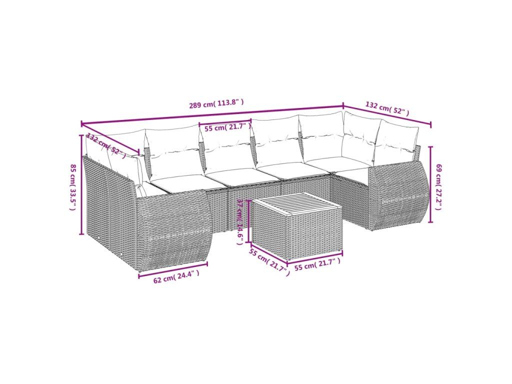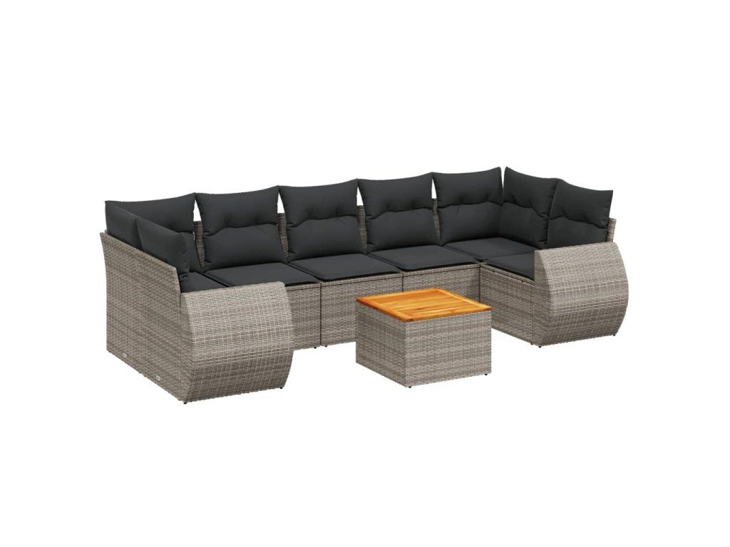 8dílná zahradní sedací souprava s poduškami šedá polyratan 3257250
