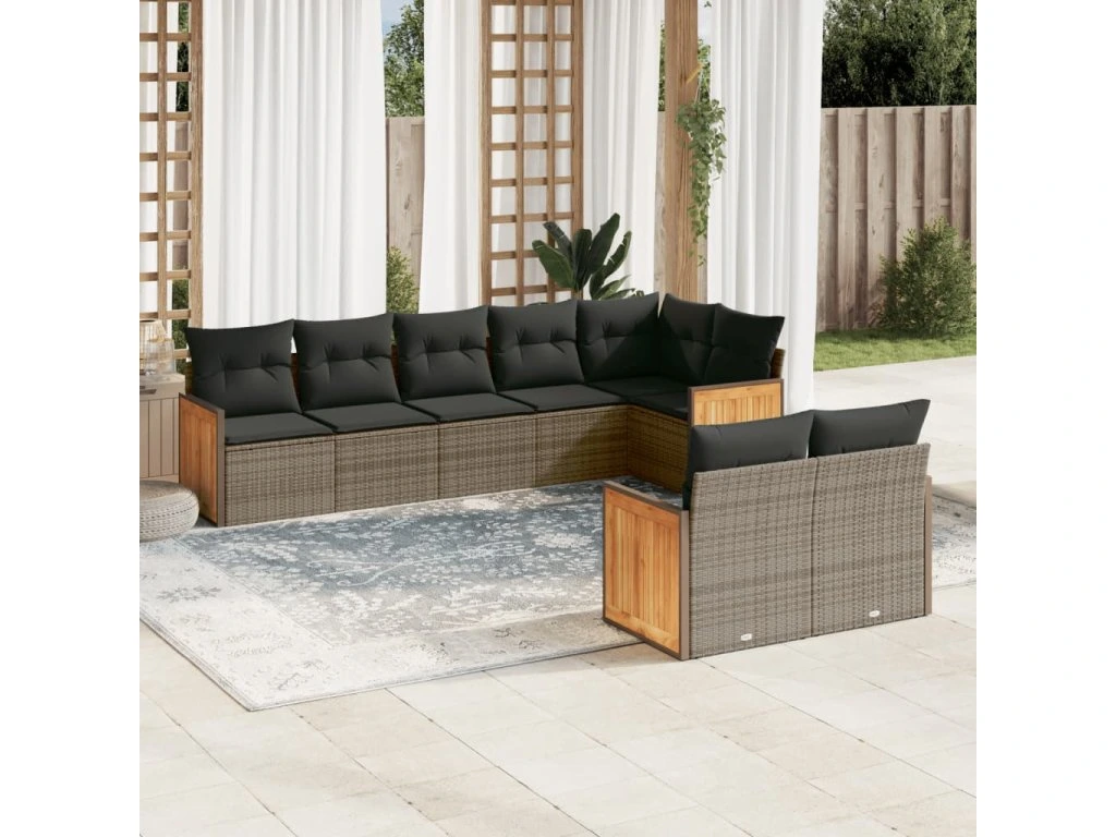 8dílná zahradní sedací souprava s poduškami šedá polyratan 3260233