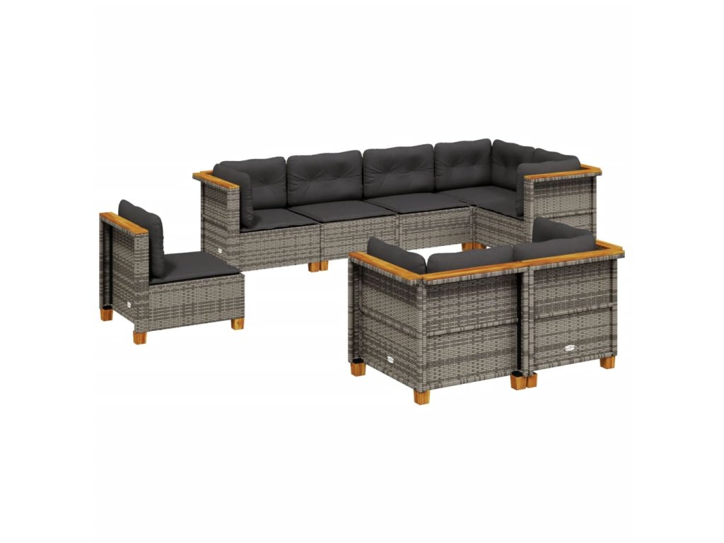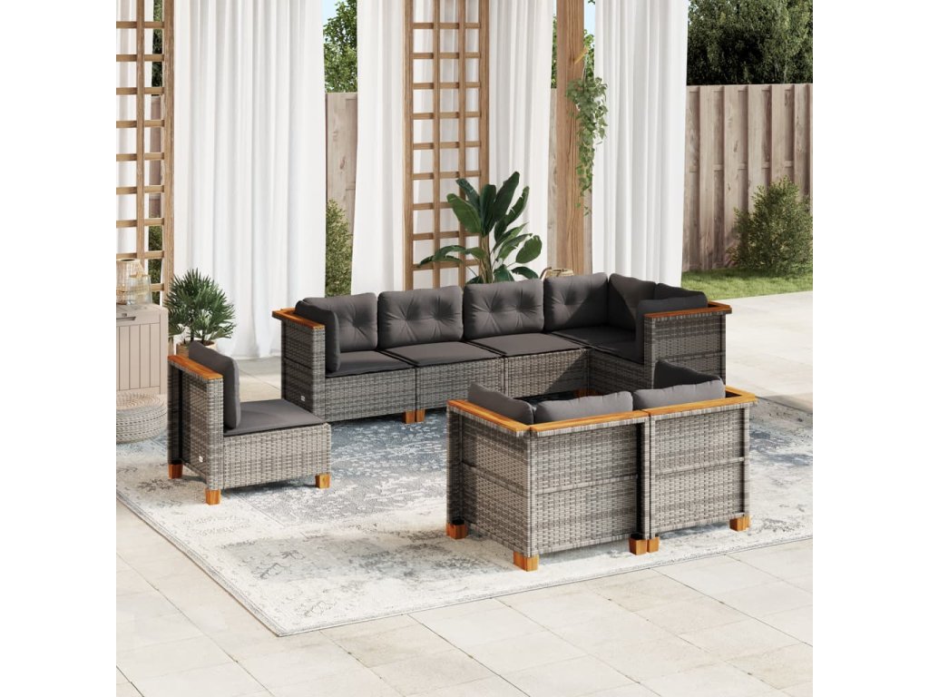8dílná zahradní sedací souprava s poduškami šedá polyratan 3261900