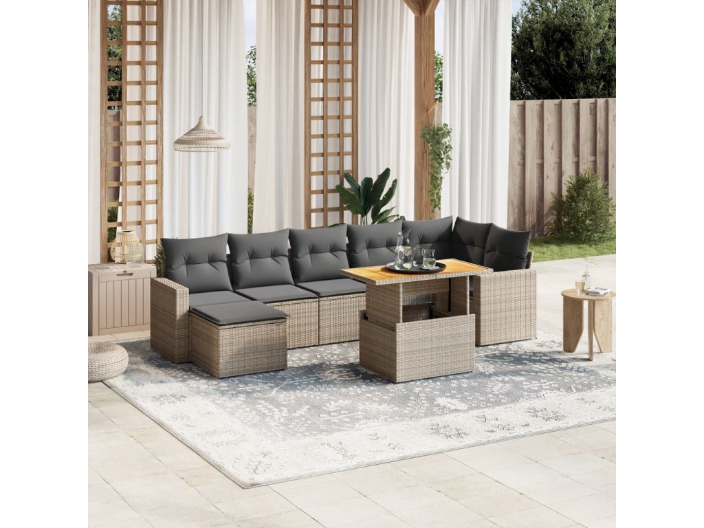 8dílná zahradní sedací souprava s poduškami šedá polyratan 3271424
