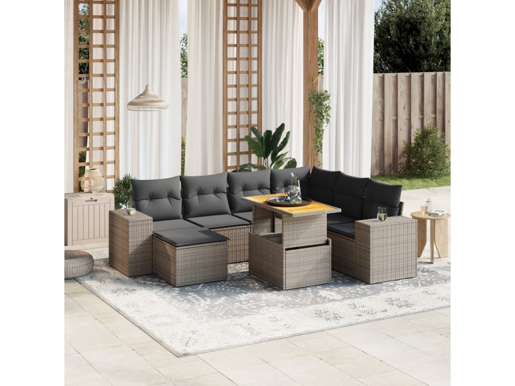 8dílná zahradní sedací souprava s poduškami šedá polyratan 3272754