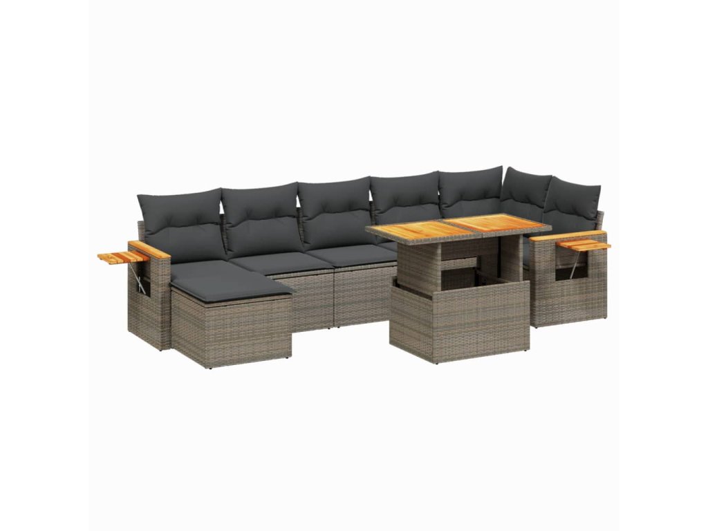 8dílná zahradní sedací souprava s poduškami šedá polyratan 3273629