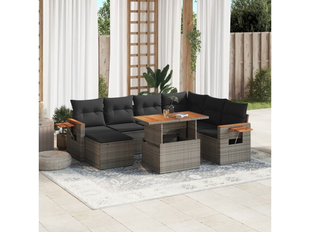 8dílná zahradní sedací souprava s poduškami šedá polyratan 3273636