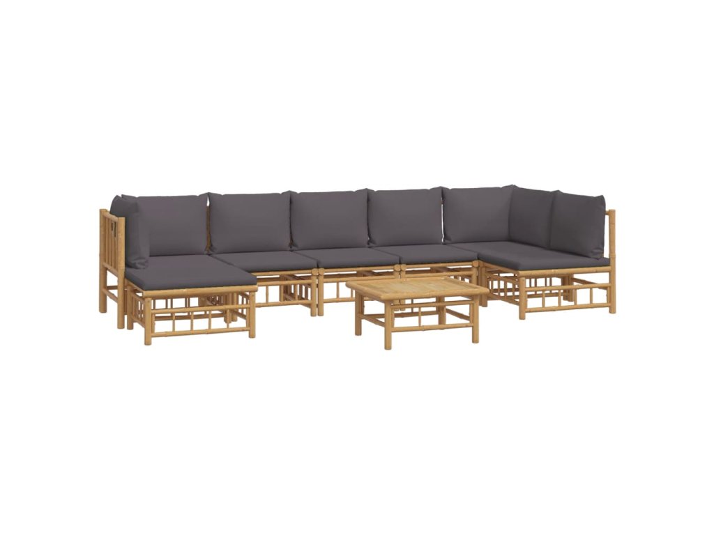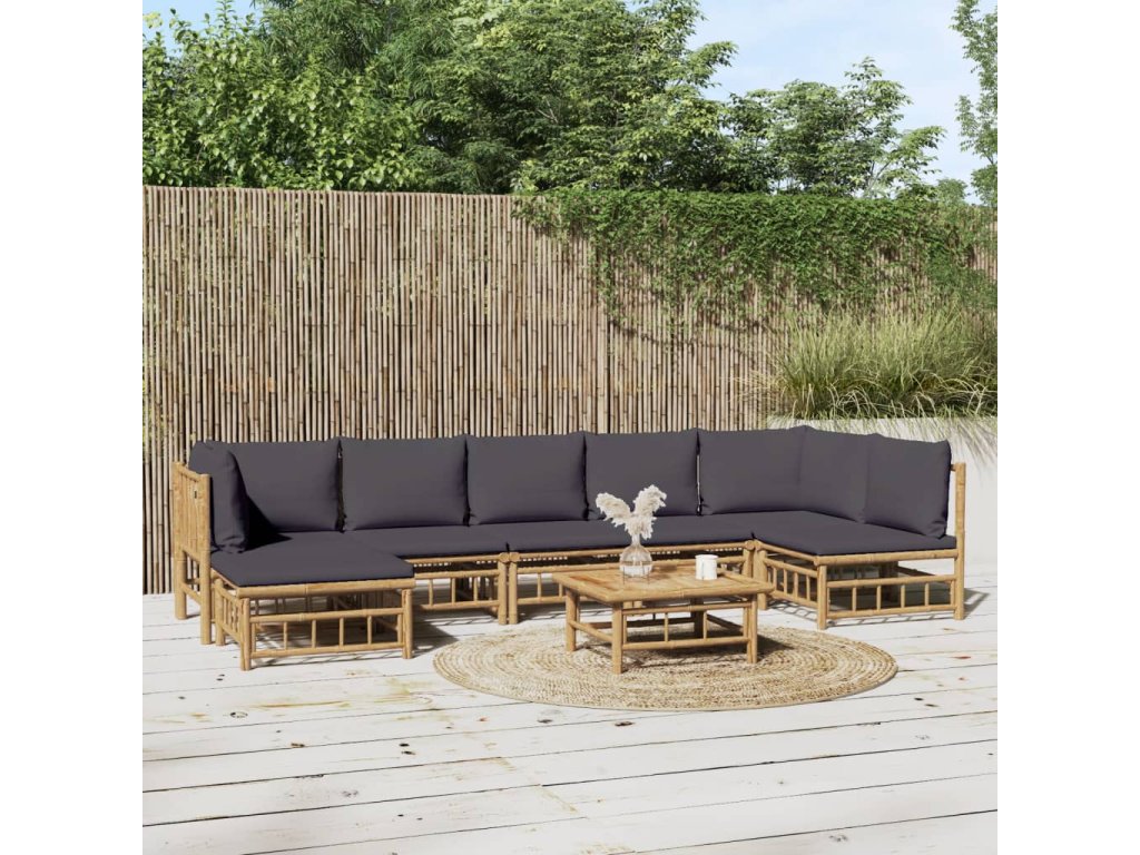 8dílná zahradní sedací souprava s tmavě šedými poduškami bambus 3155238