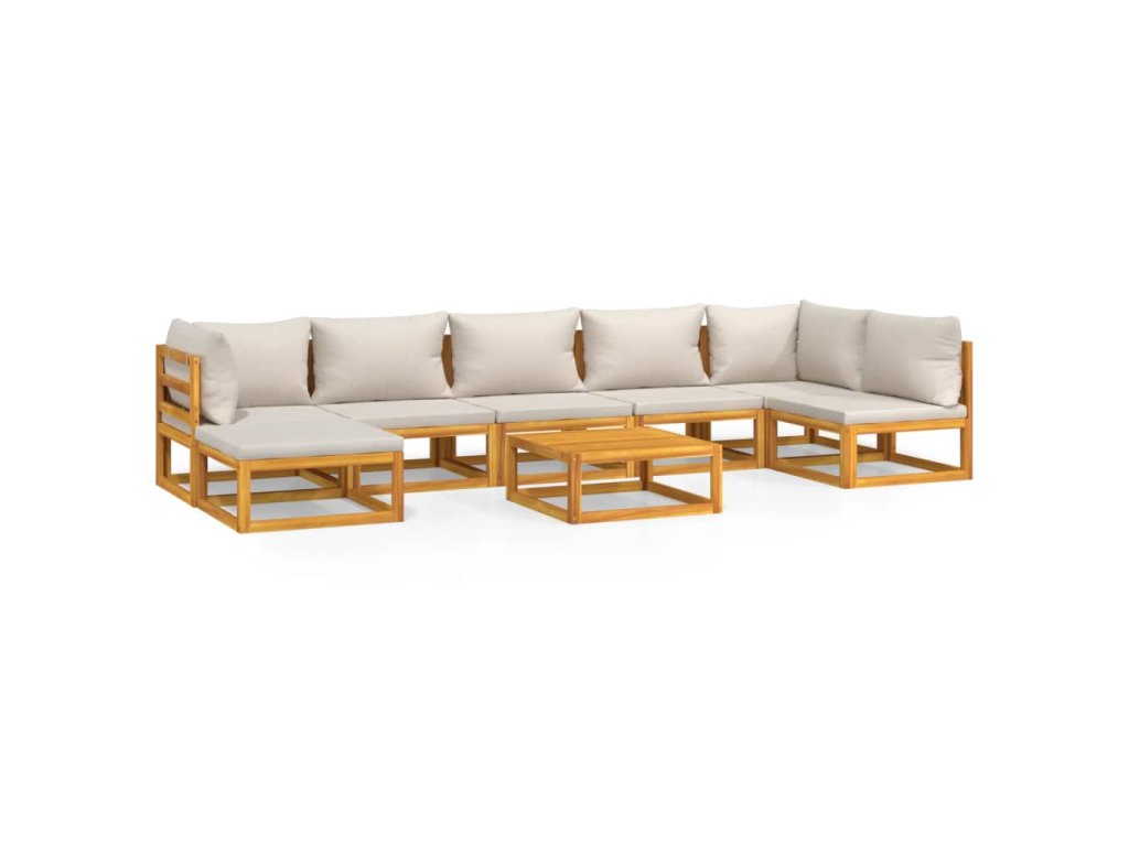 8dílná zahradní sedací souprava světle šedé podušky masiv 3155306