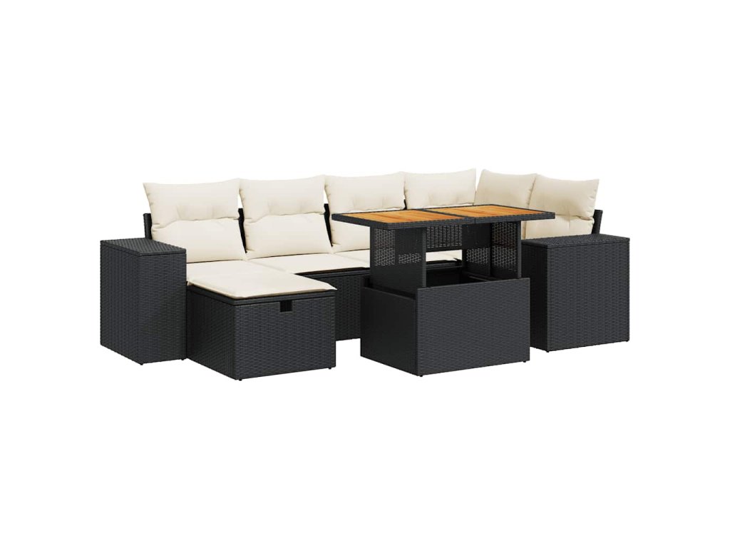 8dílná zahradní sestava s poduškami černá polyratan akácie 3328085