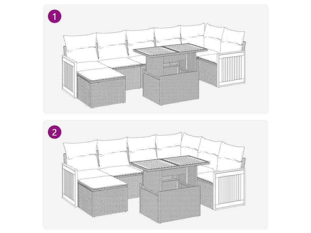 - Modulární design: Tato sada venkovního nábytku se vyznačuje modulární konstrukcí, je tedy zcela flexibilní a lze ji snadno přemisťovat, takže si můžete uspořádat venkovní nábytek dle vašich potřeb.