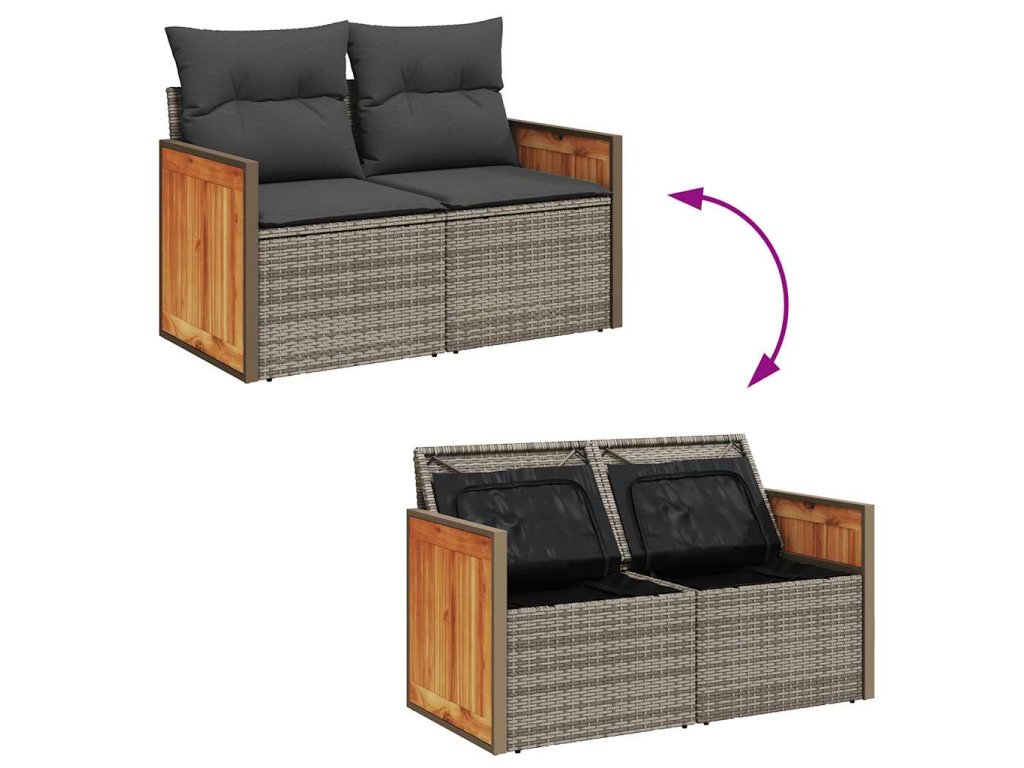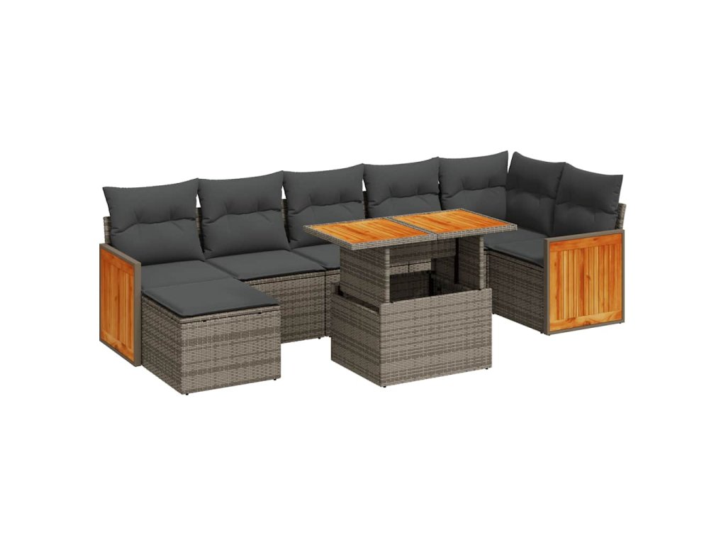 8dílná zahradní sestava s poduškami šedá polyratan akácie 3327742