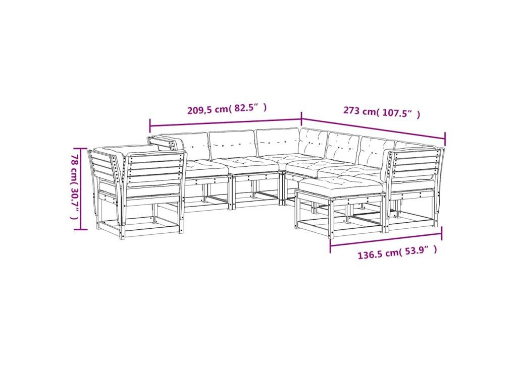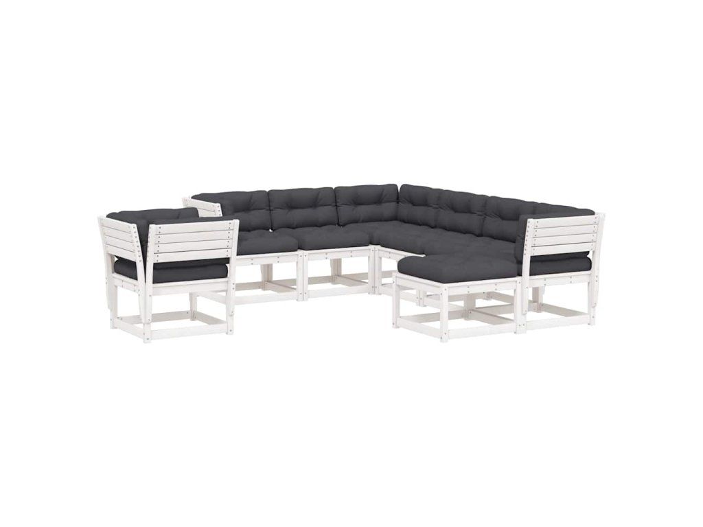 8dílná zahradní souprava s poduškami bílá masivní borovice 3216946