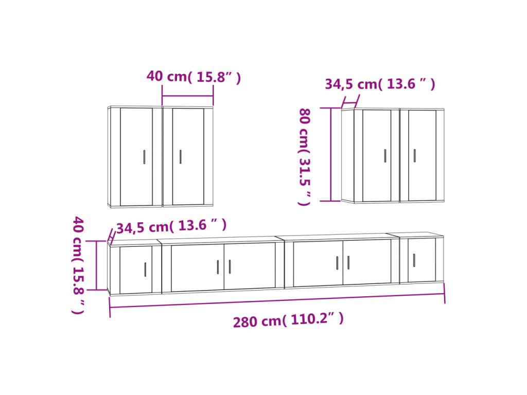 - 4x TV skříňka: 40 x 34,5 x 80 cm (D x Š x V)