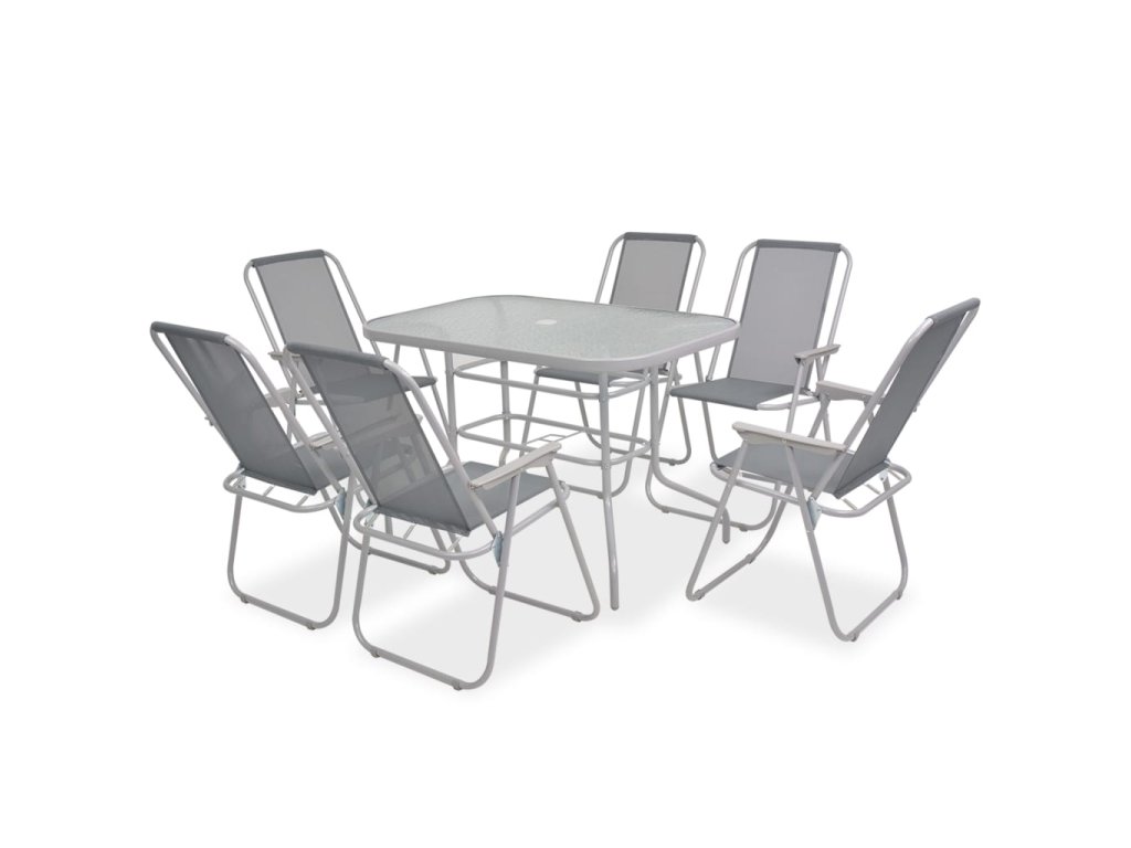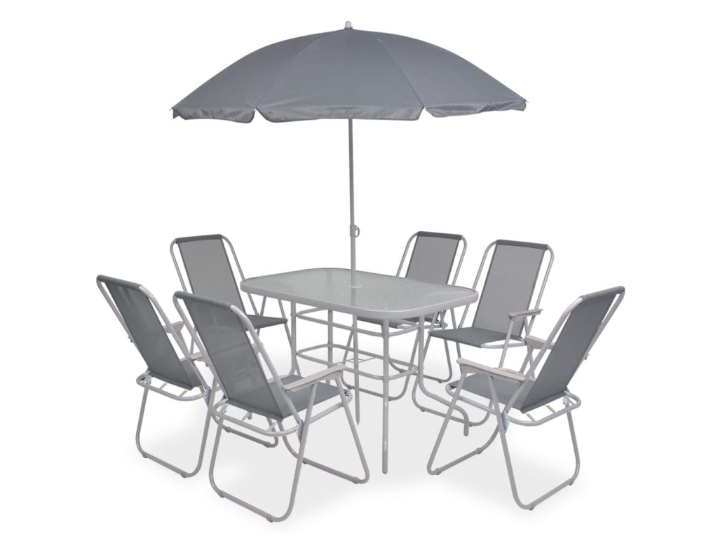 - Balení obsahuje 1 stůl, 6 židlí a 1 slunečník