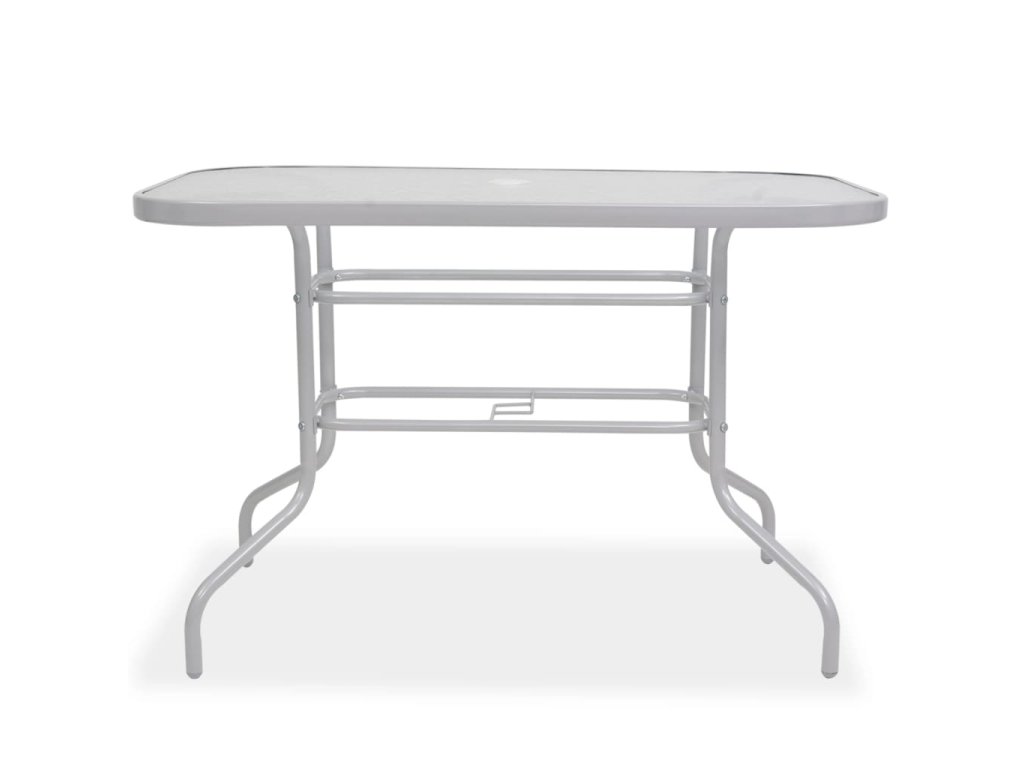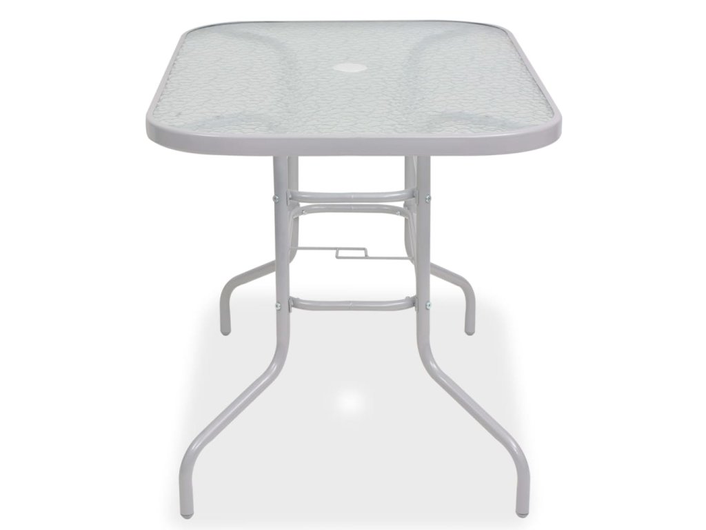 Pohodlné židle jsou vyrobené z vysoce kvalitní oceli s práškovým nástřikem. Mají sedáky a opěradla z pevného textilenu. Jsou proto velmi pohodlné a navíc dobře odolávají vlivům počasí. Stůl disponuje prostornou deskou z tvrzeného skla s okrasným vzorem vlnky, která se dobře čistí. Součástí balení je i slunečník, takže se nemusíte bát, že se spálíte. Židle se dají stohovat, aby zbytečně nepřekážely. Montáž je navíc velmi snadná.