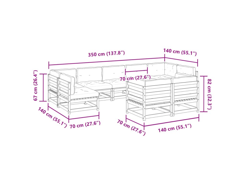 9dílná zahradní sedací souprava a podušky impregnovaná borovice 3299632