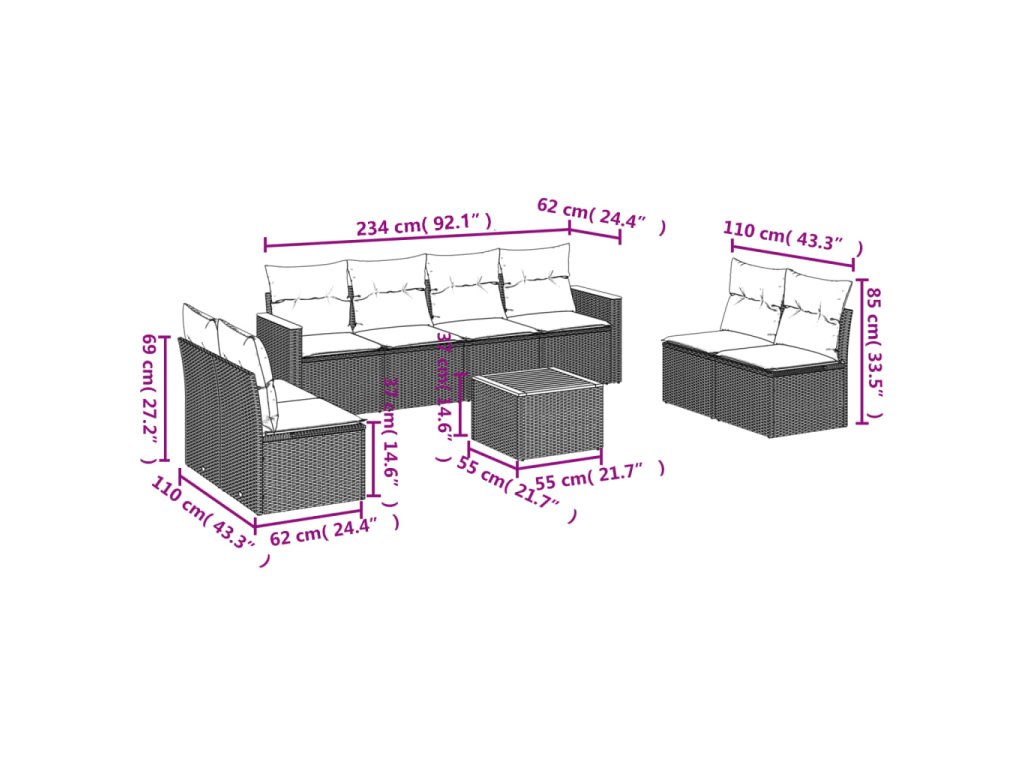 9dílná zahradní sedací souprava a podušky mix béžové polyratan 3225898