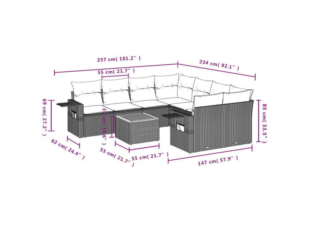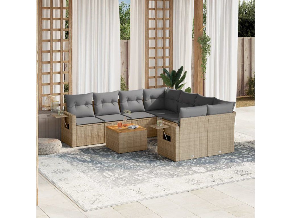 9dílná zahradní sedací souprava a podušky mix béžové polyratan 3256822