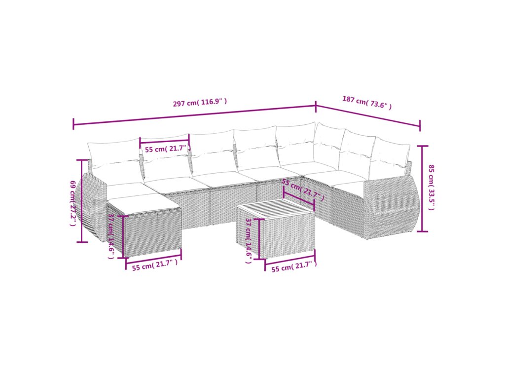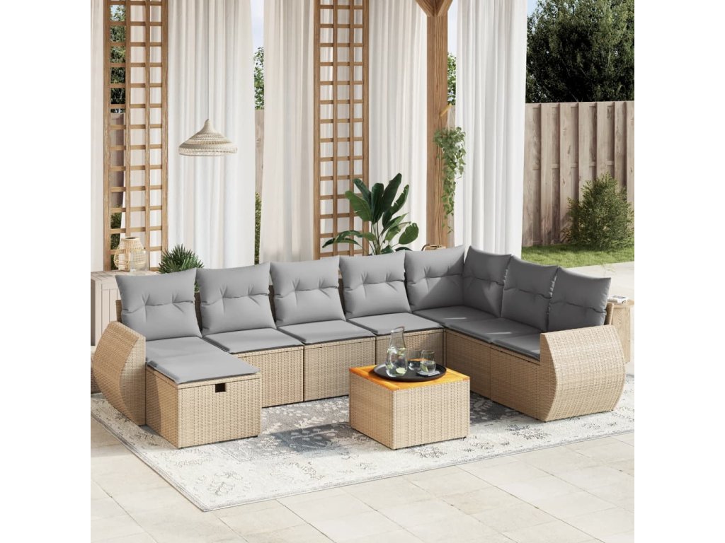 9dílná zahradní sedací souprava a podušky mix béžové polyratan 3265098