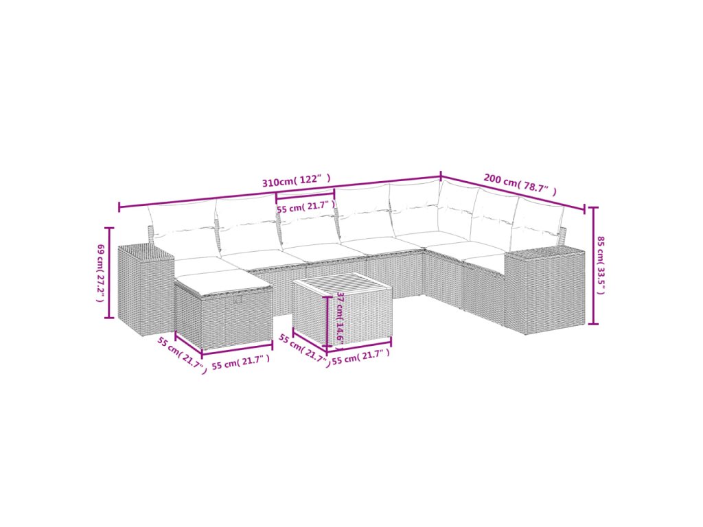 9dílná zahradní sedací souprava a podušky mix béžové polyratan 3265210