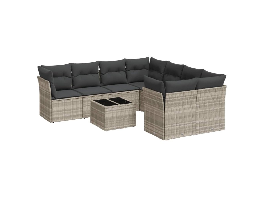9dílná zahradní sedací souprava a podušky světle šedá polyratan 3217322